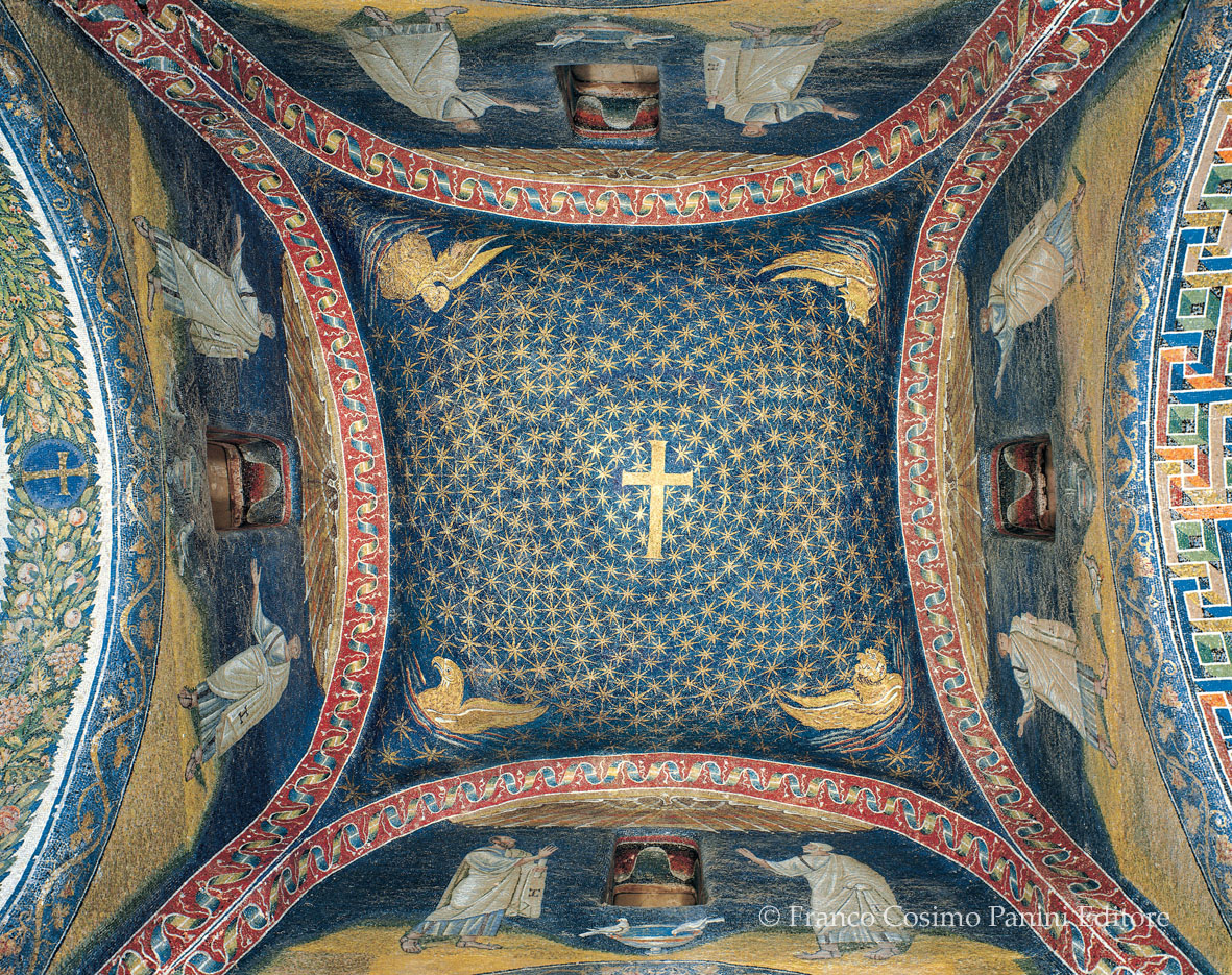 Cupola con cielo stellato, Croce e i quattro Viventi dell’Apocalisse