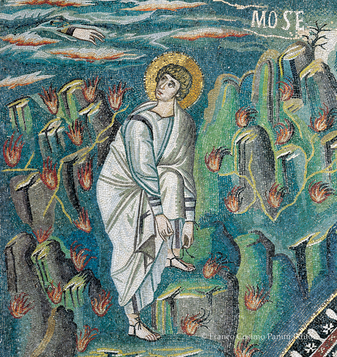 Mosè si slaccia i calzari per entrare nel roveto ardente