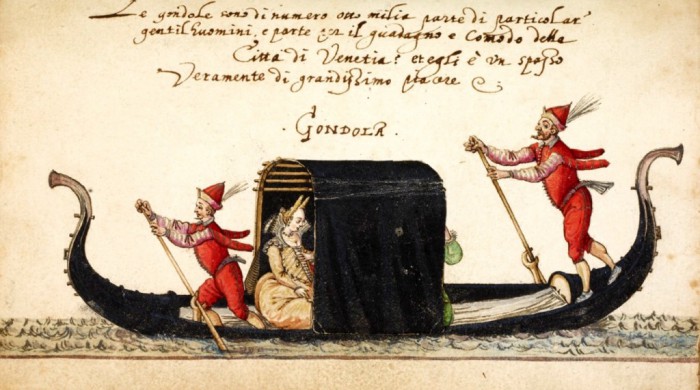 “Gita in gondola”, illustrazione veneziana del 1588, Walters Museum, Baltimora.